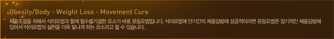 | üÁßÁ¶ÀýÀ» À§Çؼ ½ÄÀÌ¿ä¹ý°ú ÇÔ²² ÇʼöºÒ°¡°áÇÑ ¿ä¼Ò°¡ ¹Ù·Î ¿îµ¿¿ä¹ýÀÔ´Ï´Ù. ½ÄÀÌ¿ä¹ý¿¡ ´Ü±â°£ÀÇ Ã¼Áß°¨·®¿¡ ¼º°øÀûÀ̶ó¸é ¿îµ¿¿ä¹ýÀº Àå±âÀûÀΠüÁß°¨·®¿¡ ÀÖ¾î¼ ½ÄÀÌ¿ä¹ýÀÇ ½ÇõÀ» ´õ¿í ºû³ª°Ô ÇÏ´Â ¿ä¼Ò¶ó°í ÇÒ ¼ö ÀÖ½À´Ï´Ù. ¸ÔÀ» À½½ÄÀº ¾î´À Á¤µµ ¼·ÃëÇÏ¸é¼ ¸¹ÀÌ ¿òÁ÷¿©¼ üÁßÀ» Á¶ÀýÇÏ´Â °ÍÀÌ °Ç°ÇÏ°Ô »ìÀ» »©´Â °¡Àå ÁÁÀº ¹æ¹ýÀÔ´Ï´Ù. ÇÏÁö¸¸ »ç¶÷¿¡ µû¶ó¼ Àڽſ¡°Ô ¸Â´Â ¿îµ¿ÀÌ ÀÖÀ¸¹Ç·Î Àü¹®°¡¿Í ÃæºÐÇÑ »ó´ã ÈÄ¿¡ ÇÊ¿äÇÑ ¿îµ¿À» °áÁ¤ÇÏ´Â °Íµµ ´ÙÀÌ¾îÆ®ÀÇ È¿°ú¸¦ ÃÖ´ë·Î ÇÒ ¼ö ÀÖ´Â Áö¸§±æÀ̶ó°í ÇÒ ¼ö ÀÖ½À´Ï´Ù. |